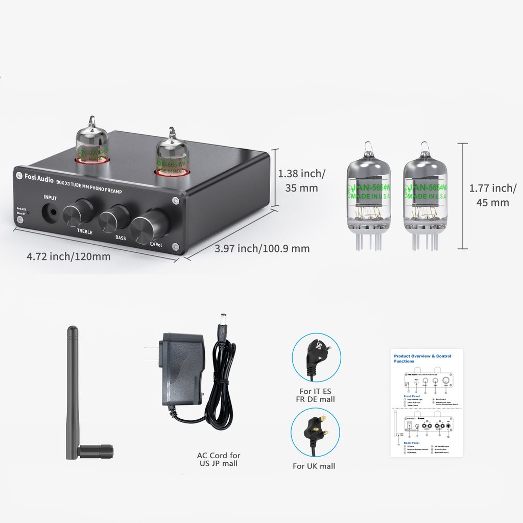 Elektronkový gramofonový předzesilovač Fosi Audio BOX X3 v sobě kombinuje nostalgii a retro v podobě lampového zvuku s moderní technologií bezdrátového přenosu. Převádí signál z gramofonu na linkovou úroveň. Díky kvalitním komponentům a možností uzemění je výsledkem čistý zvuk s ultra-nízkým šumem. Kovové hliníkové šasi chrání zařízení před vibracemi a elektromagnetickými interferencemi. Instalace je jednoduchá a intuitivní. Předzesilovač nabízí 4 výstupní úrovně (OFF/39/42/45 dB).