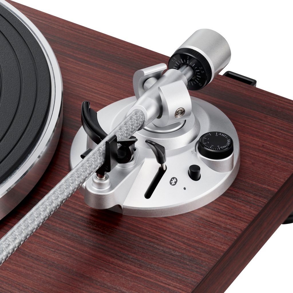 Základna gramofonu je tvořená 30mm MDF deskou, jejíž povrch zdobí elegantní dřevěný dekor Rosewood. Pokročilou technickou výbavu zastupuje především přímé karbonové raménko a aktivní stabilizace rychlosti otáčení talíře. Tím je zaručeno nejen dokonale přesné snímání povrchu desky, ale i přesné otáčení talíře bez kolísání otáček a tím i bez zkreslení zvuku.