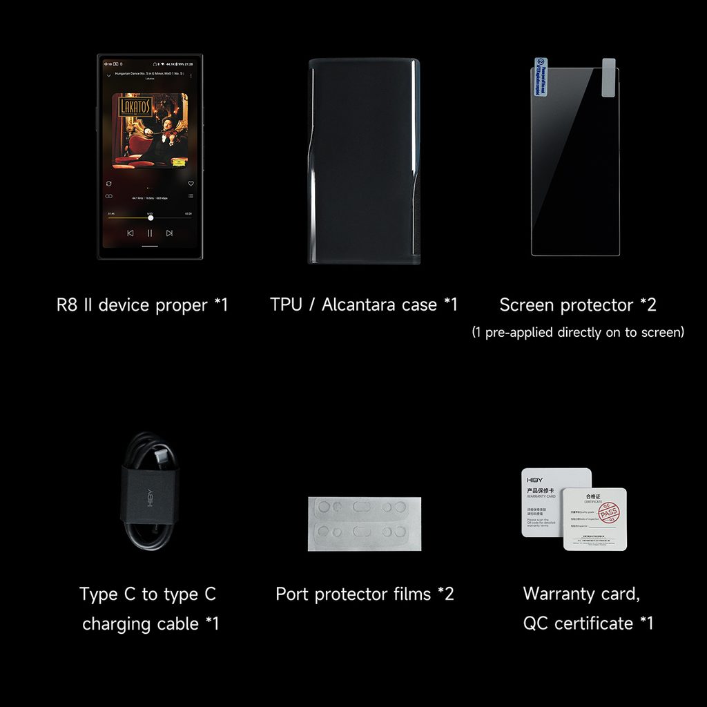 HiRes přehrávač HiBy R8 II je vyroben z vysoce lesklé nerez oceli, ale pro příjemnější pocit na dotek jsou záda přístroje pokryta luxusní alcantarou, jemnou semišovou látkou, využívanou také v interiérech luxusních vozů.