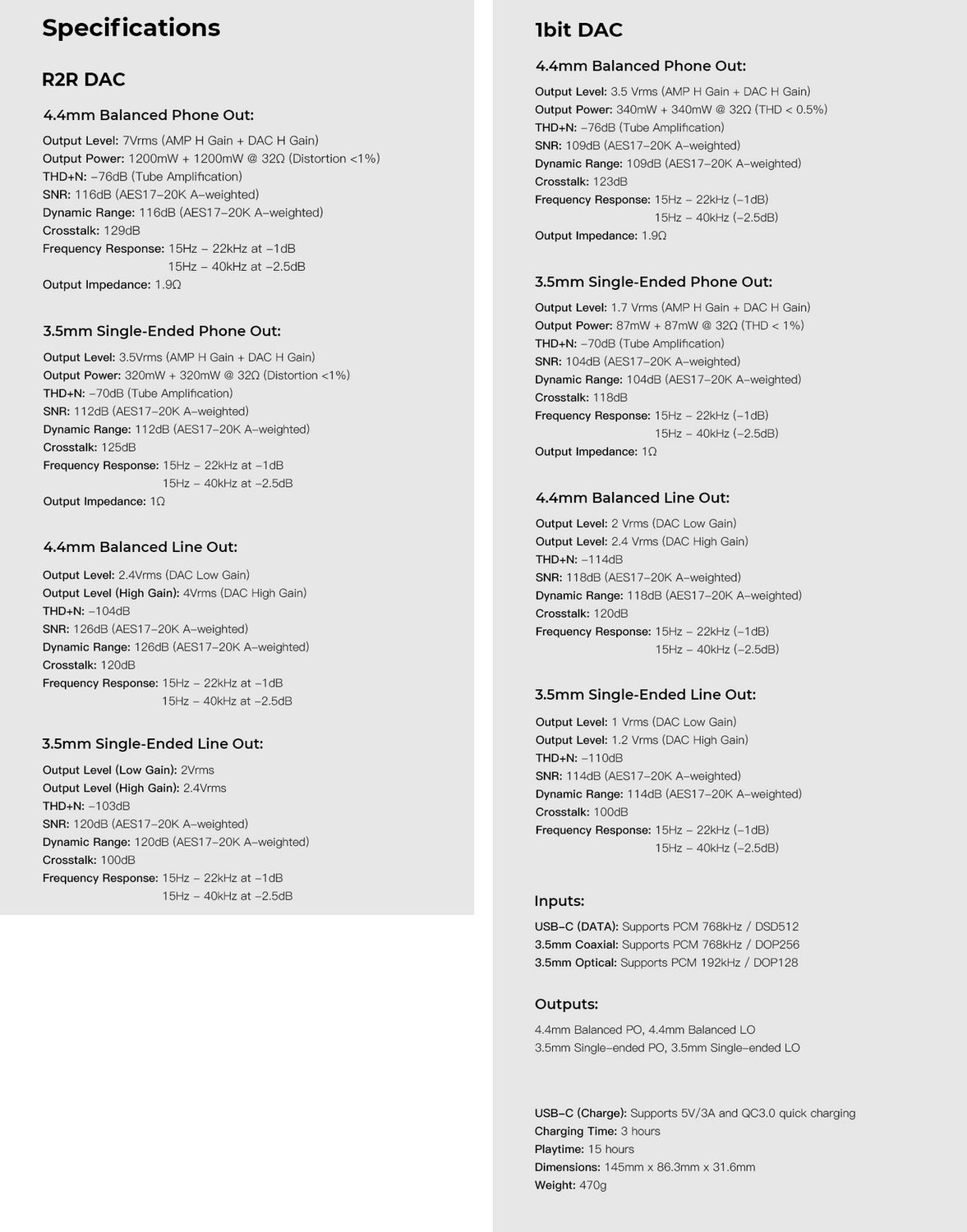 VÝSTUPY: symetrický Jack 4.4 mm + klasický Jack 3.5 mm