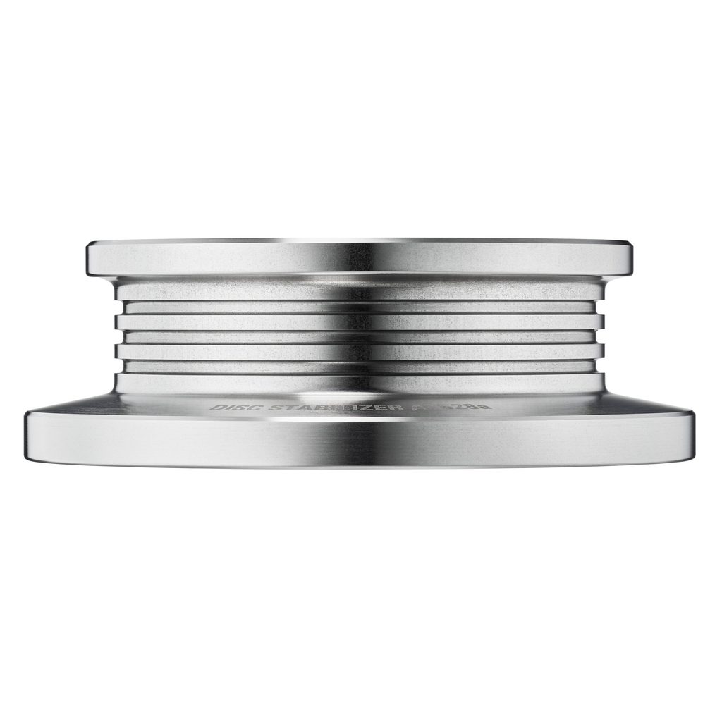 Stabilizátor se nasazuje na středový trn gramofonu, čímž desku pevně zafixuje k talíři, což vede k čistšímu a stabilnějšímu přednesu. Spodní strana je vybavena dvěma zapuštěnými kroužky, které zajišťují dokonalý kontakt i u desek, které jsou mírně zvlněné nebo mají výstupek u středového otvoru. Díky nemagnetickému provedení je zcela bezpečný pro všechny typy přenosek a jeho moderní design odolává korozi i oxidaci.