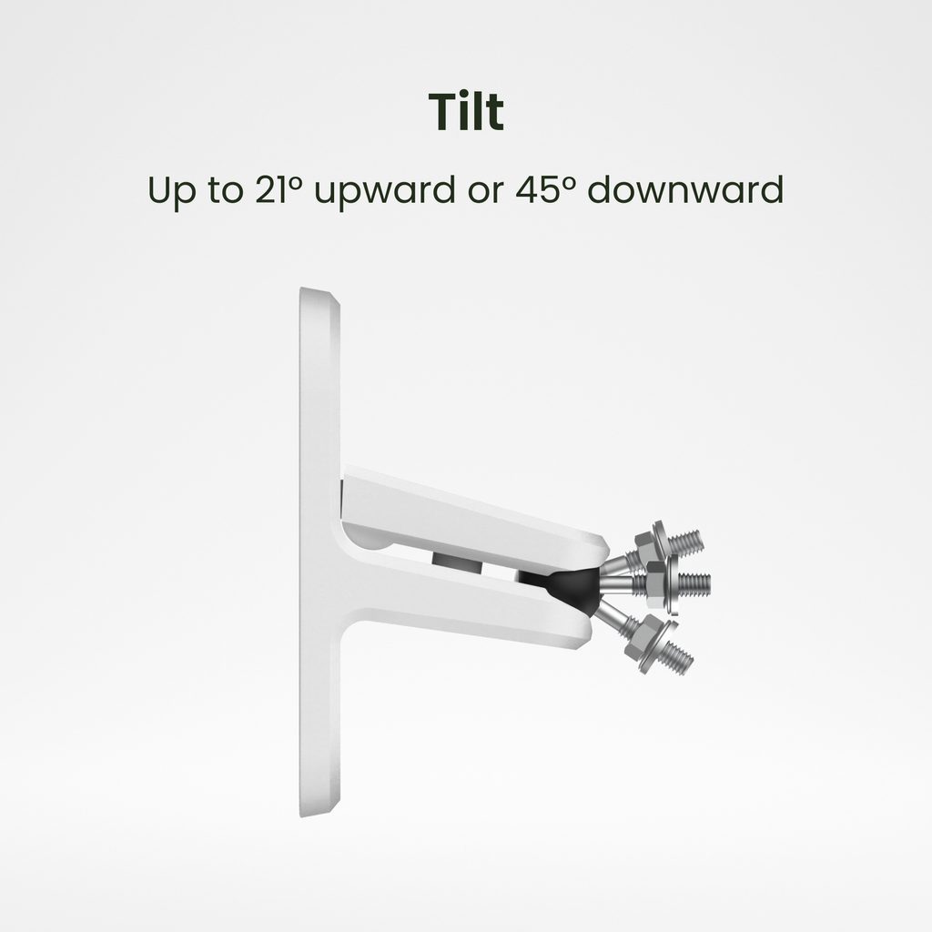 Použitý robustní kulový kloub umožňuje plynulé, ale pevné uzamčení nastavené pozice, čímž zajišťuje, že reproduktory zůstanou přesně nasměrovány.