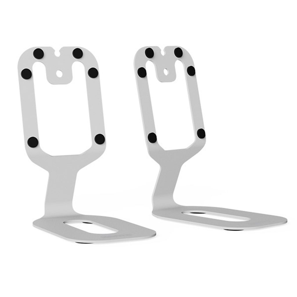 Stojánky jsou vyrobeny z masivní oceli s odolným práškovým lakováním, což zajišťuje potřebnou tuhost pro stabilní usazení techniky. Pro zamezení přenosu nežádoucích vibrací mezi reproduktorem a stolem jsou stojany osazeny integrovanými silikonovými podložkami. Ty fungují jako mechanický izolant a zároveň chrání povrch nábytku i samotných reproduktorů před poškrábáním.