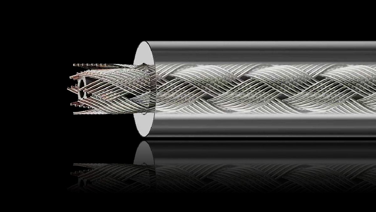 Špičkovou koncepci sluchátek doplňuje i stejně kvalitní symetrický kabel splétané konstrukce. Jeho vodiče kombinují vlákna z postříbřené mědi a z čistého stříbra. Tím je zajištěna průzračnost a hbitost zvuku, který je pro model ZETA II typický.
