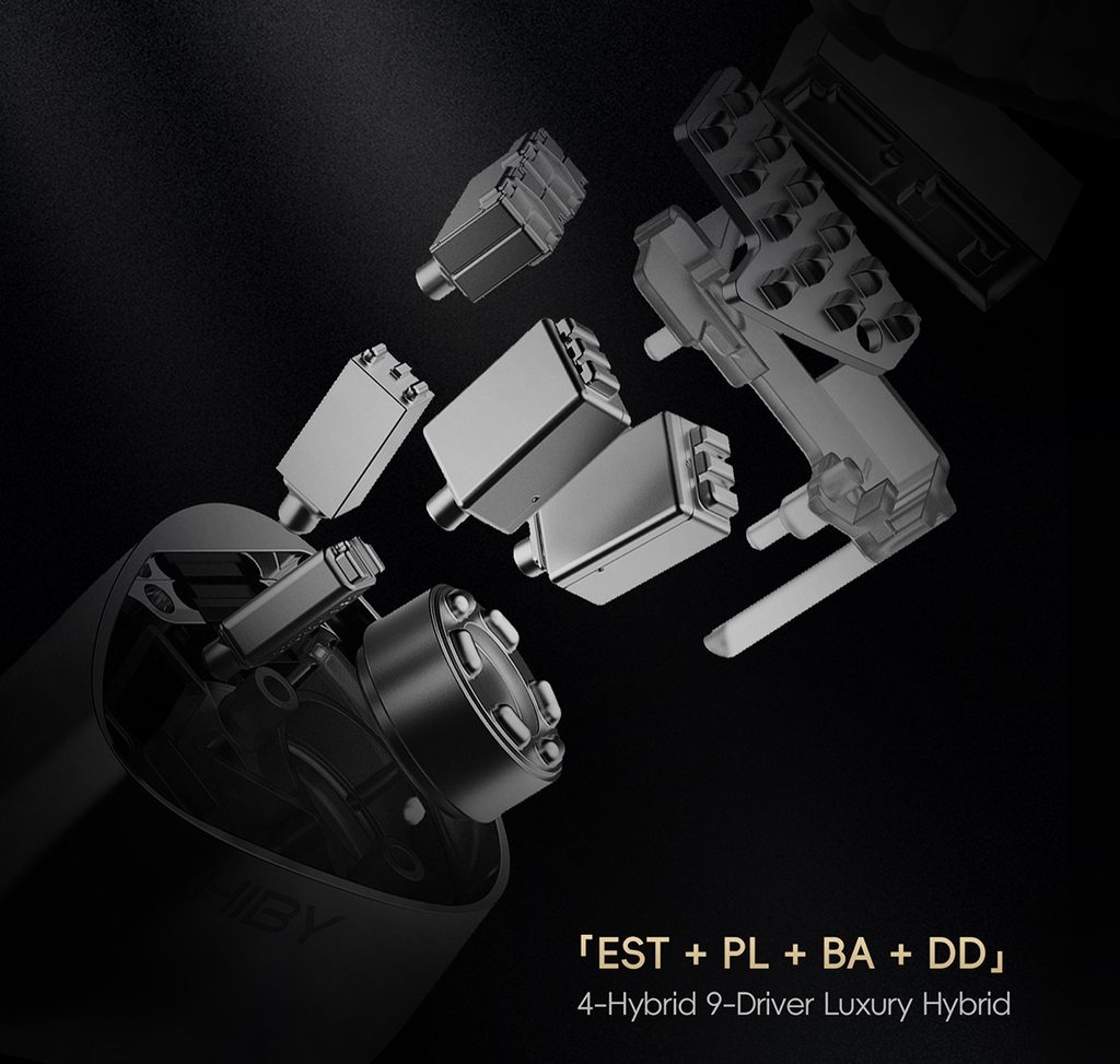 - 1x dynamický měnič, 4x elektrostatický, 1x Planar Magnetic a 3x Balanced Armature