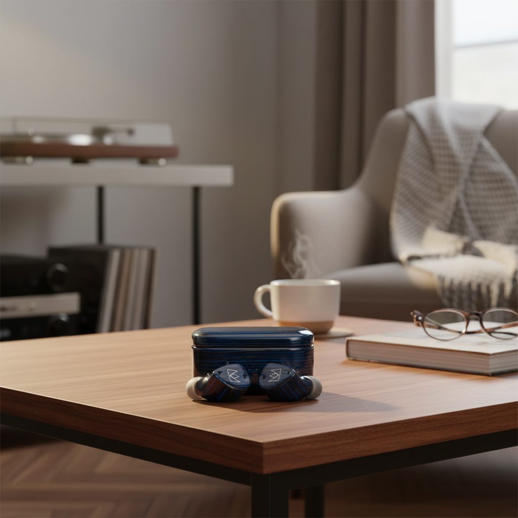 Také z pohledu konstrukce je Encore výjimečným modelem. Samotná sluchátka i pouzdro jsou totiž vyrobeny z kvalitního dřeva s velmi jemným lakovaným povrchem. Tento materiál není jen dekorací; dřevo přispívá k lepší akustické rezonanci a zároveň zajišťuje, že žádné dva kusy nebudou vizuálně identické.